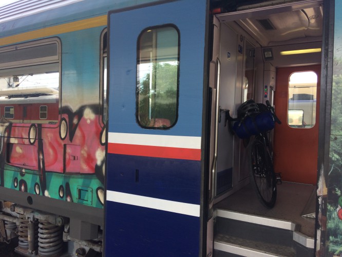 I put the bike together in the Train station, a bit cooler than the 32C outside,