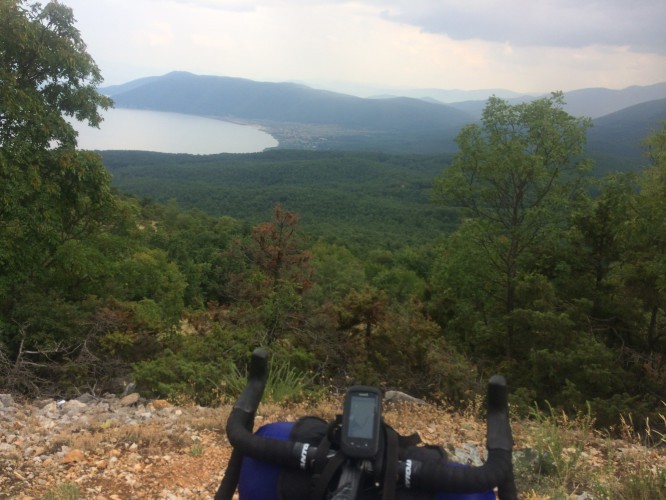 Back up to 1000 metres, then up and down on the shores of the huge Lake Prespa.