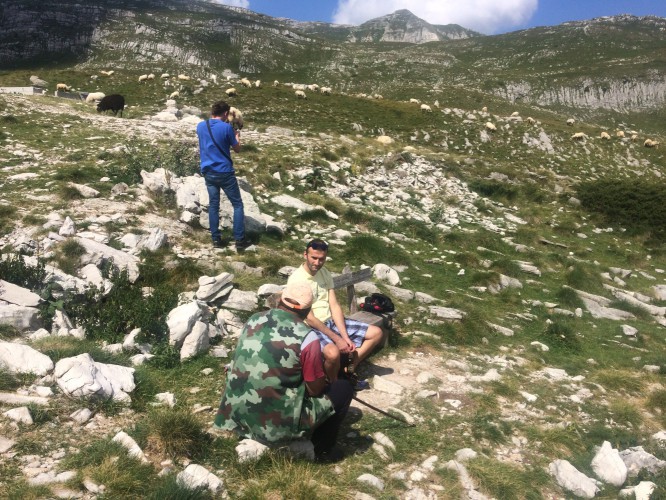 I meet the guys here who had taken my photo before, chatting with a shepherd. They get a beer for each of us from the car, a Serbian and a German, and the shepherd. A good ten minute break.