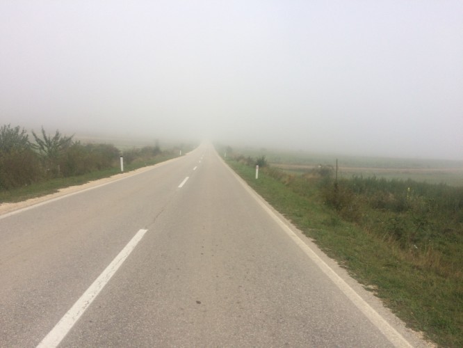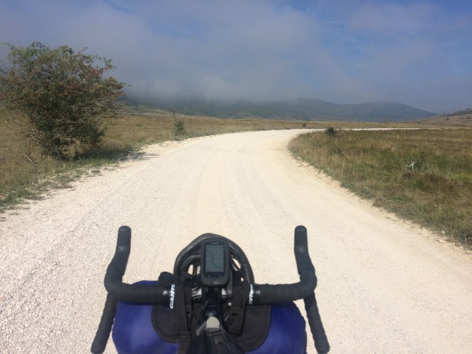 10 km out of Glamoc on a quiet road, and onto the R 402, 50 km on an unsealed road across this high plain, with no traffic at all.