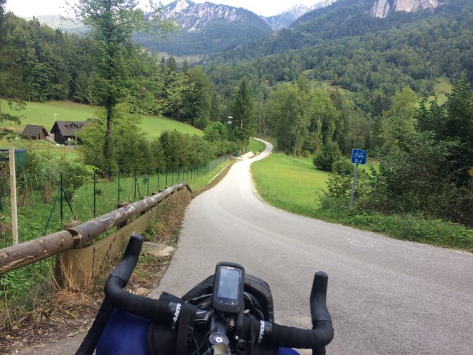 Straight away though, on to a bike path that’s away from the road and spectacular scenery from the Triglavski National Park.