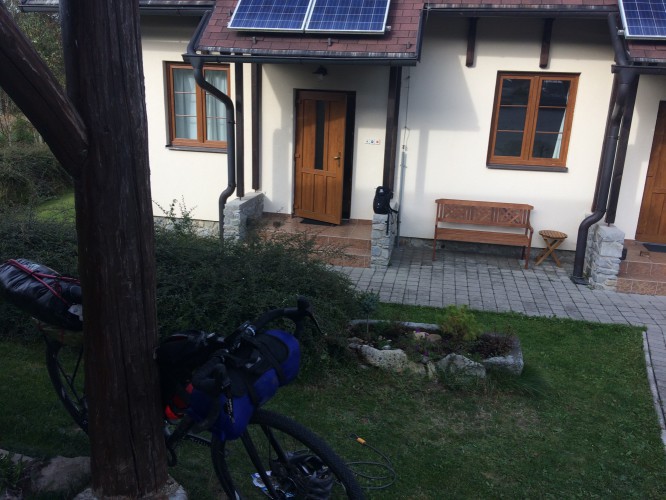 After a 300 metre fast downhill I arrived to Borová Lada town and tried several Penzions with no luck, they were full or closed. Just as I contemplated camping outside town I spoke to a guy who owned several new apartments. The only guy who could speak English it seemed in town. He had someone arriving tomorrow for his apartment and was happy to let me have it for 500 crowns, 20 Euro.