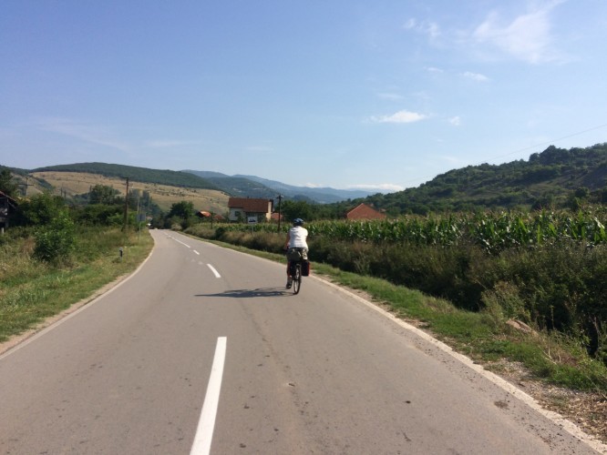 After a short break in Knjaževac it was onwards and indeed upwards with 750 metres climbing in an afternoon that was now properly hot. Fortunately the tiny road had shade from trees quite often, but it was a tough 55 km.