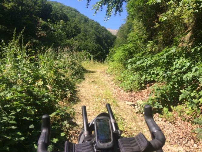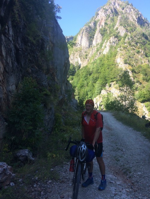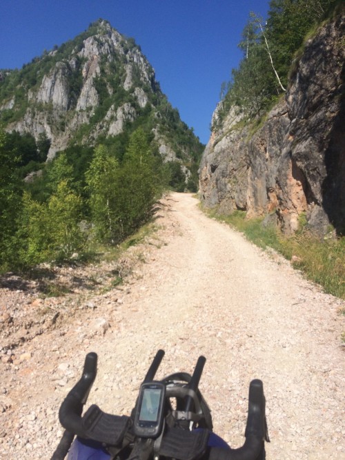 The climb begins steadily after the village, but it isn’t until just before the lake Cerna where it begins properly. Last night was at 350 metres above sea level, and the lake at 720 metres. But the track around the lake improved, just early compacted mud – but not so bad when it’s dry.