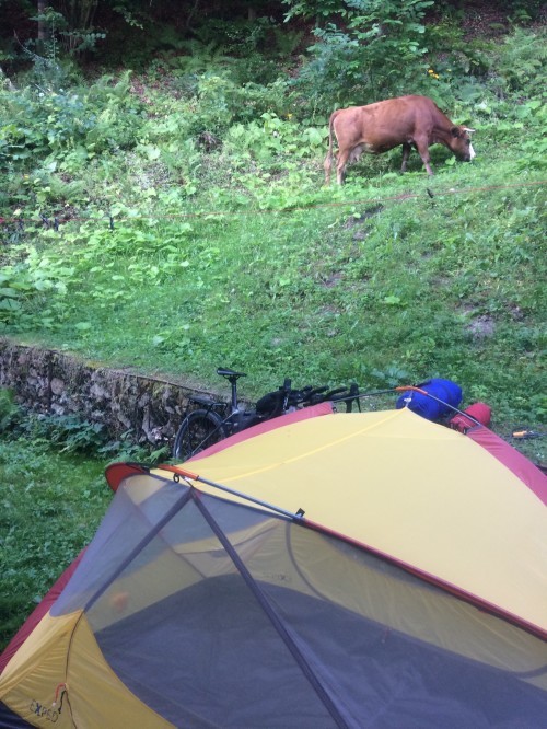 I had high hopes for Dracula Camping, but they were soon dashed. Fellow cyclists I had passed had enjoyed it. It’s small, noisy, next to the main road and highly fenced, apparently because of brown bears, but then again that does help the owner’s bank balance..