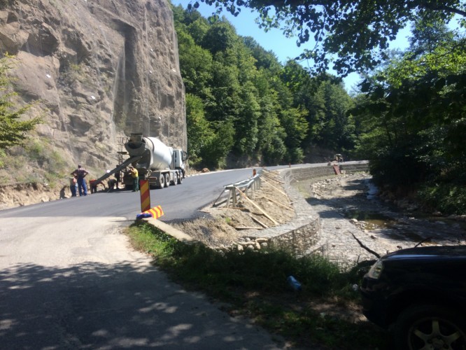 In Perişani and the seal ends with 400 metres of the climb to the pass and 20 kilometres left, so it’s slow going.