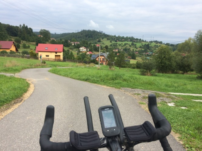 After Krnov the cycle path starts to gain some height, but very steadily, heading for those hills in the background. A lot it from here is a dedicated cycle path.