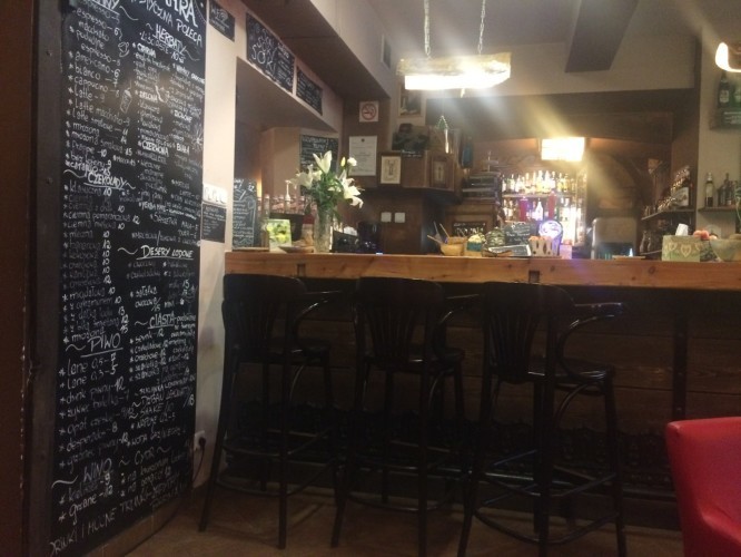 Lądek Zdrój. Warming up after that chilly downhill in the wonderful Dom Klahra cafe with a cup of Earl Grey, some apple cake, to a background of classical guitar.