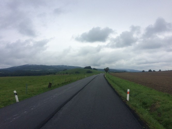 Leaving Jesenik on a cool and wet morning, it’s just 9C.