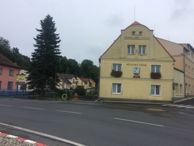 It was a short day on distance, but some really good cycling. The first part was on the road through a series of villages, this one Lipová-lázně. A climb of a couple of hundred metres, then a long gradual downhill.