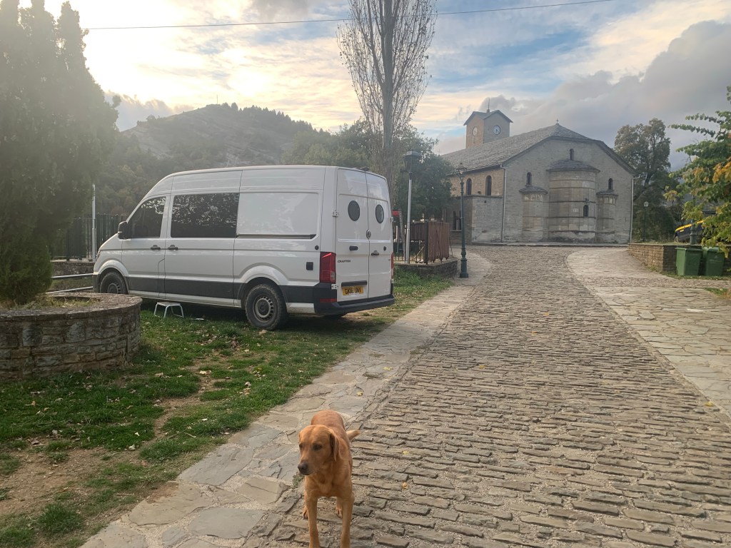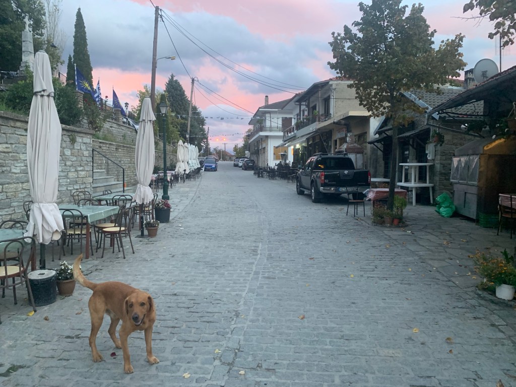 Eventually I got to the high town of Pentalofos, at 1100 metres. It’s a whole different question staying overnight in a small town like this in the off-season than in summer. There’s a space slightly above the town main street by the police station. I asked inside, and they said of course it was okay.