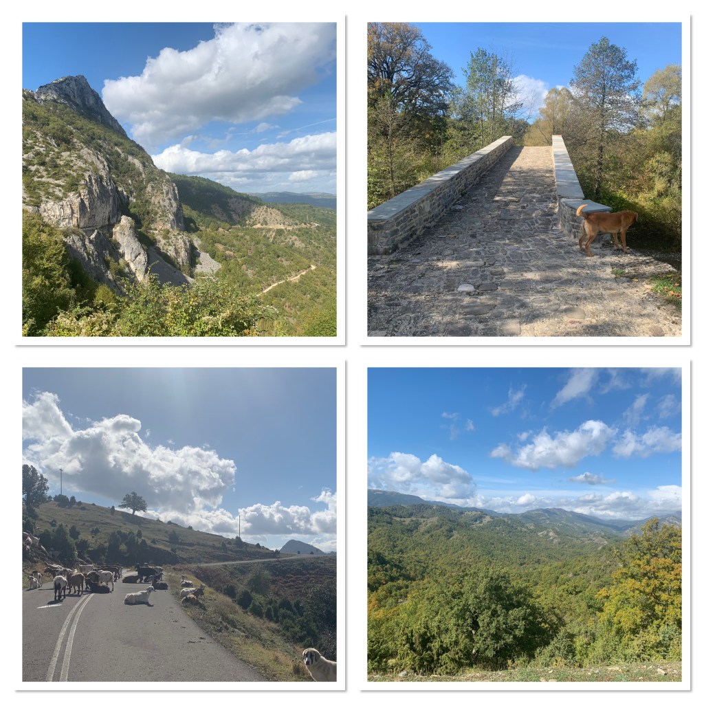 I’m now in the Grevena region of Western Macedonia. Macedonia means highlands, and travelling the 40 kilometres between Pentalofos and Spileo this morning was a slow rollercoaster of a journey, up and down between about 800 and 1000 metres frequently, on rarely used narrow roads with sharp bends and hairpins. It was tremendous.