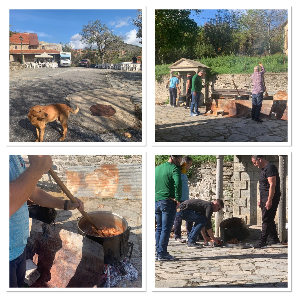 The Festival was explained. Preparation of the food was underway, most people drinking iced coffee. It will begin in the late morning and last until about 5 pm. There will be a local band, who were just setting up. Though their very mention caused some laughter. And dancing. It is strictly a local affair, to which they invite two or three other nearby villages. Food is the highlight; kontosouvli, slow cooked pork which then resembles pulled pork, but more spicy, really good actually. I was offered a taste, to go with the coffee I was presented with. Many will drink tsipouro, a local and traditional spirit.