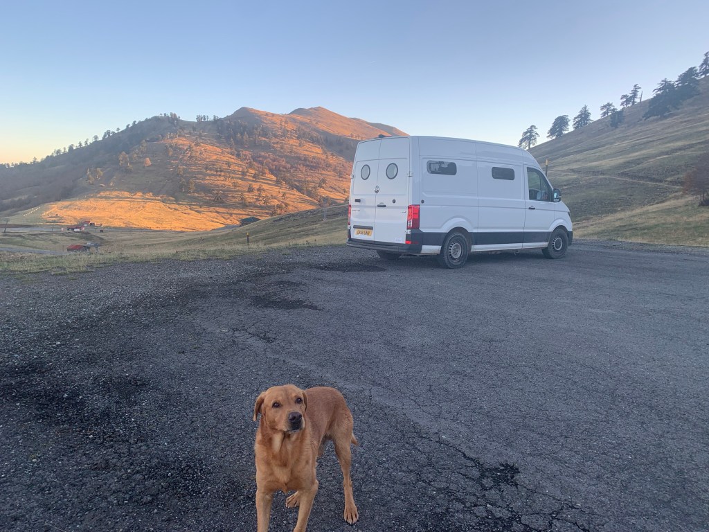 They usually do make good places for stopovers out of season, and this certainly was. There has hardly been a vehicle on the road all afternoon, and I’m a kilometre or so off the road, completely quiet, and the moon still almost full. I would imagine it can be windy up here, but today the weather was pretty much perfect; cloudless, windless, high of 14C, low at the moment (9 pm) of 5C.