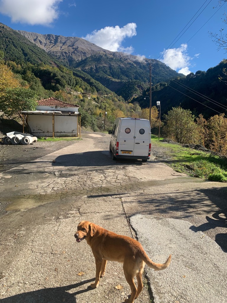 But first to Karpenisi. The journey was 101 miles, and took almost 4 hours. The roads continue to be amazing to drive on. Today just about took the prize. I lost count of the number of passes I headed over. Frequently up to 1200 metres and down again to 400 metres. Progress was slower than usual as there was the expected debris on the road, some of which even required me moving them.