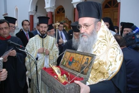 But the monk was strangely silent when it came to the arm. Saint Polycarp, who lived between the years 69 and 155, was bishop of Smyma in Turkey, and is the patron saint of Nafpaktos. He is also patron saint of Earaches and Dysentery. Useful to know should you suffer from either. His arm, mummified and embossed in gold, was found in Constantinople in 1455, already 1300 years old, and brought to the monastery for safe-keeping when Constantinople fell in 1479. And here it has remained. The picture is from the internet, rather than one of my own..