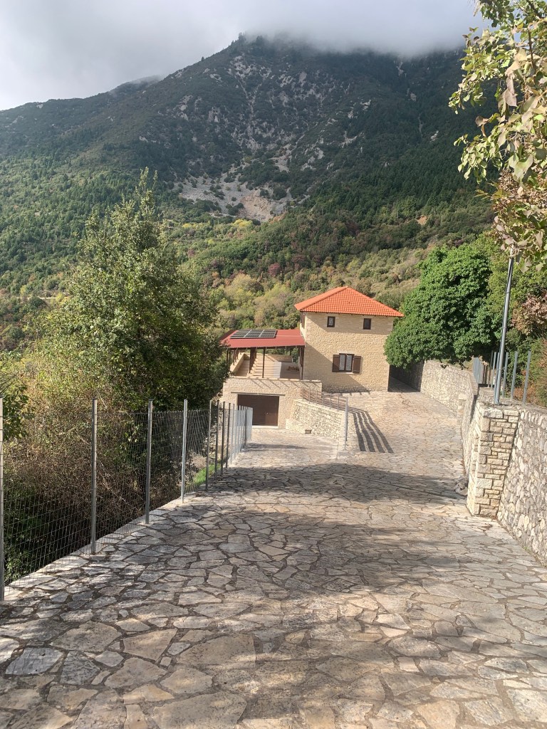Set on a spectacular projection with a perspective across the Kakkavou Gorge is Theo’s house (below). As I passed I shouted a greeting, to which he responded and we soon got chatting. He has built the house completely by himself over the last ten years, and is almost finished. Work has been slow, as he only retired from work as an electronic engineer two years ago, before then of course, time was limited. It is in effect, an off-grid house, with all the electricity coming from solar, the water from the surrounding hills, and the heating from wood. The stone used for building is local also.