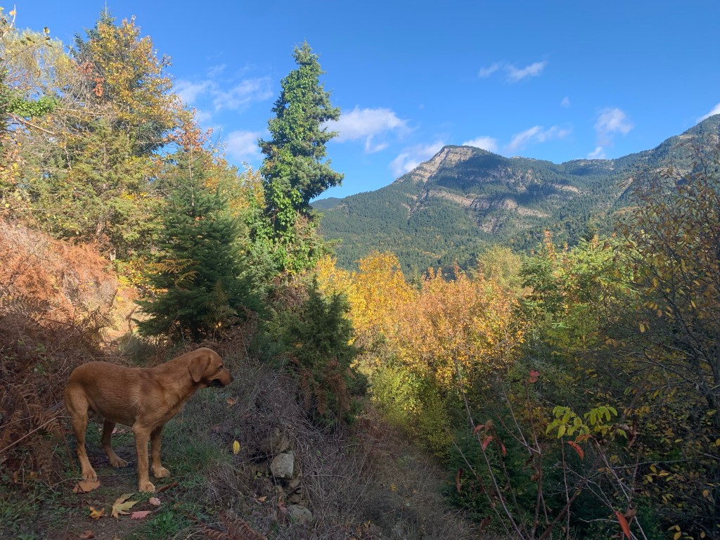 This morning, Sunday, the crisp autumnal weather continued, and I put together a circuit of the area, with the surrounding forested hills at their very best. There were a few people around, several of whom I spoke to over coffee this morning. Most were here for a funeral in a nearby village, or leftovers from the impromptu festival.