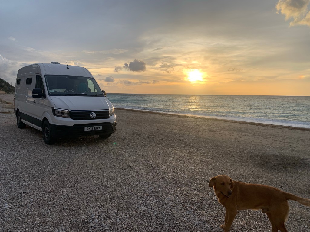 After a meander around the north of the island I ended up on Kathisma Beach, a mile-long beach where the wide boulevard that runs parallel attracts campervans and motorhomes, which are made welcome in the summer by the many bars and restaurants. At this time of year they are all closed, but there were still a few vans, mainly Germans. It was a mix of young families home-schooling, even though they told me it wasn’t legal to do it in Germany, and surfers. This is a week of unsettled weather though, another storm was blowing in, and the surfers were confined to their vans. It was a sociable place to stay, the weather turned out to be showery, so it was possible to get out periodically, though the night was one of strong wind.