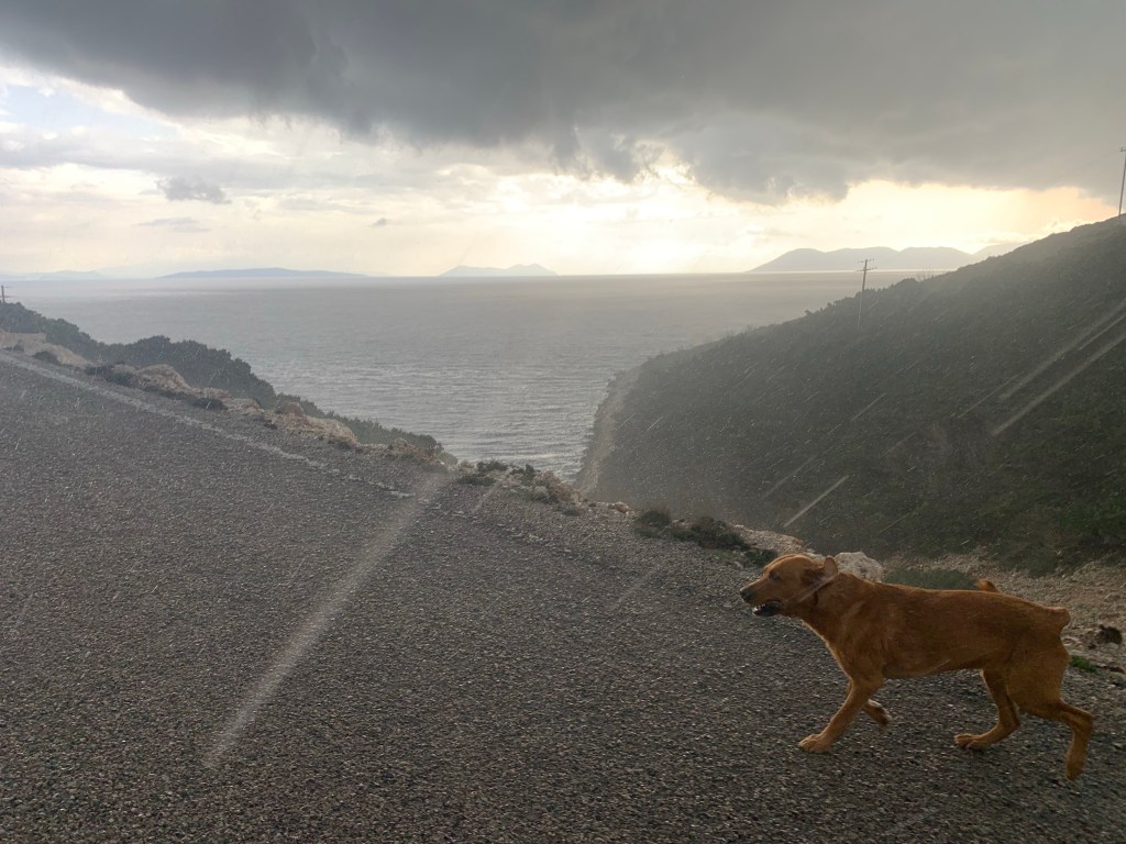 I’m sitting out Storm Apollo in the hill village of Karya, still on Lefkada island. It’s been a week of storms, interspersed with some fine warm days, but this is a big one, lasting about 15 hours, and named, with rain falling heavily as subsequent thunder showers today, Saturday, followed by wind tonight and tomorrow.