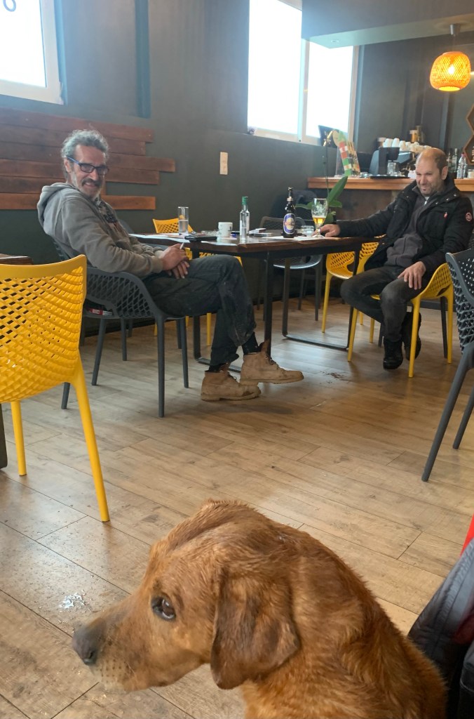 Yesterday evening I took a wander around the village, which has a great setting, though isn’t as picturesque as those in the Kravara. It does have a supermarket and one open taverna though, and we called in for a Friday beer. I had thought that dogs would not be welcome indoors, but with the places so quiet, Roja is not just welcomed, but made a fuss of as well. He has been given the odd snack in the last few we’ve been in, so looks up in expectancy when the landlord passes now. And again, no surprise, he got lucky.