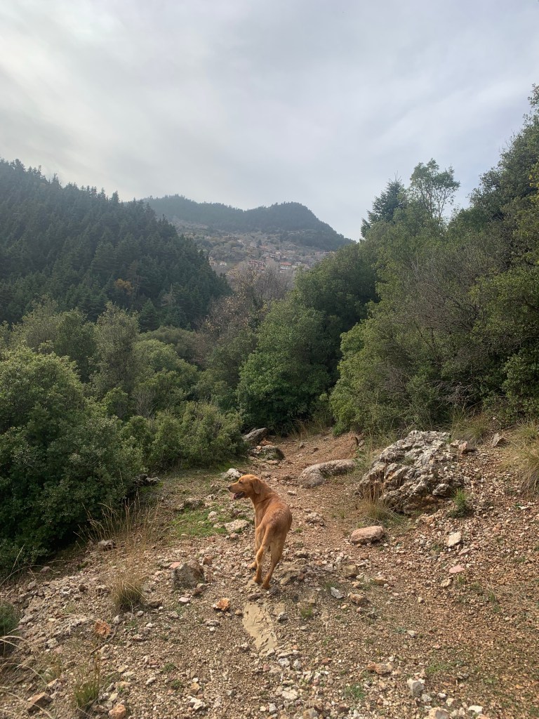 I had put together a walk that completed a circuit that took in the gorge, the St Nicolas Abbey, set into the rocky cliff, and then joined the Mainalon Trail for about five kilometres, then arriving back into Valtesiniko from the north. It would have taken a couple of hours, but when crossing the river on the Trail, I followed Roja rather than watching for the green trail markers, or referring to my GPS, and we walked a kilometre, perhaps a bit more, in the wrong direction.