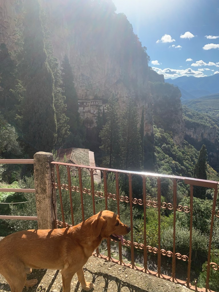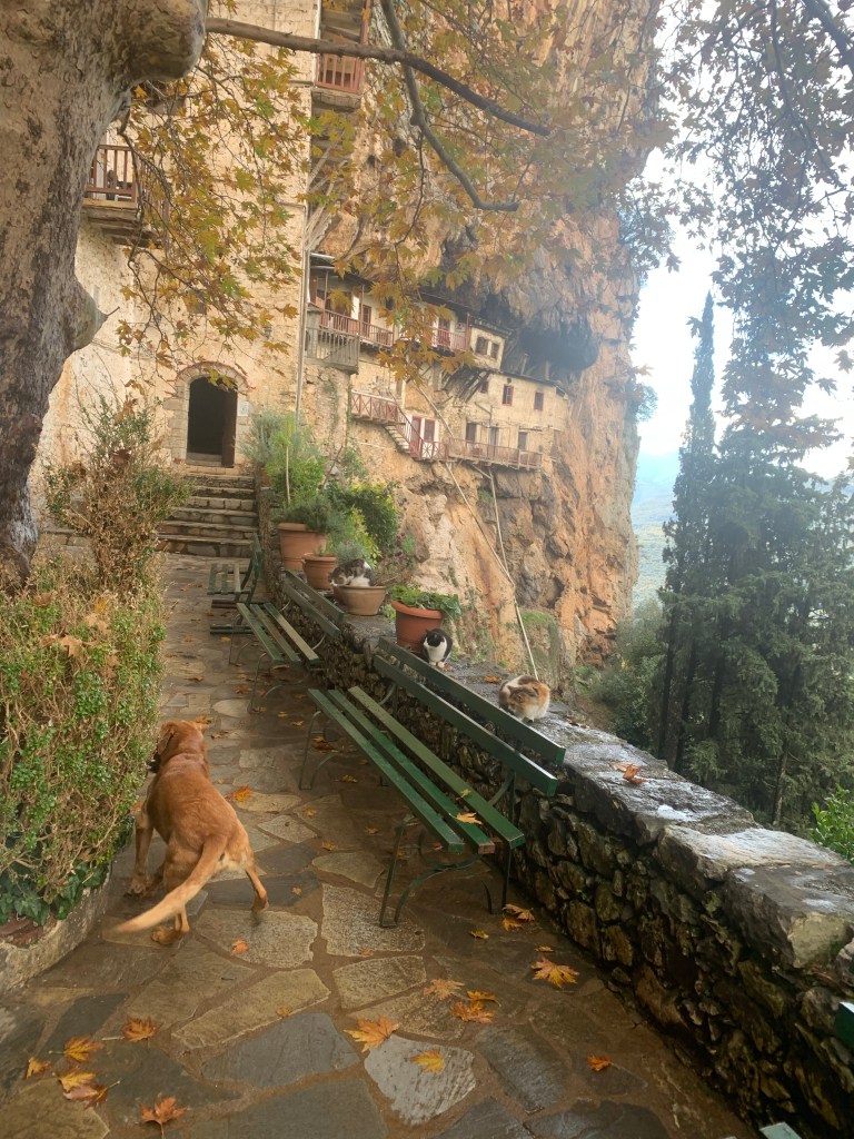 From there, it was up 400 metres of ascent, and about 4 kilometres, to the Podromos Monastery, founded in the sixteenth century, nestled in the cliffs.