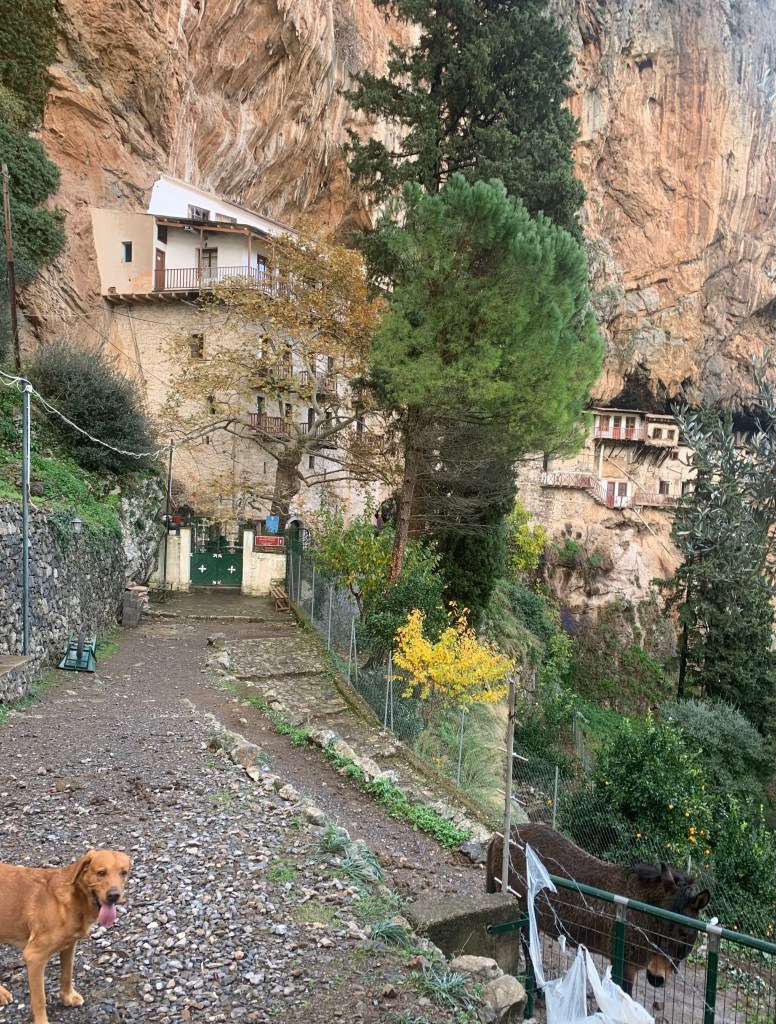 It is actually built into the hollow of an overhanging cliff. Some monks say its founding was actually four hundred years earlier. Due to its hidden and inaccessible position it was used as a refuge and hospital for local fighters during the Turkish occupation.