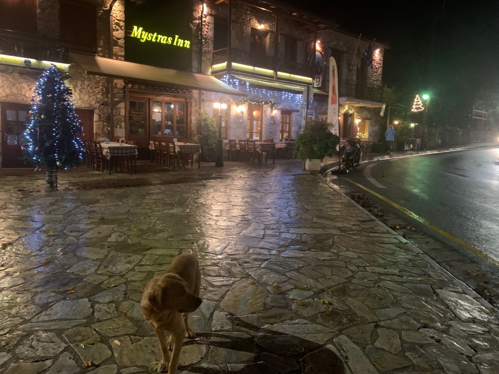 I had parked up there the night before having driven the hour or so south from Gortynia. It was a stormy night, with plenty of thunder, lightning and heavy rain, but I did find a break in the evening to walk in for a beer at the Mystras Inn.