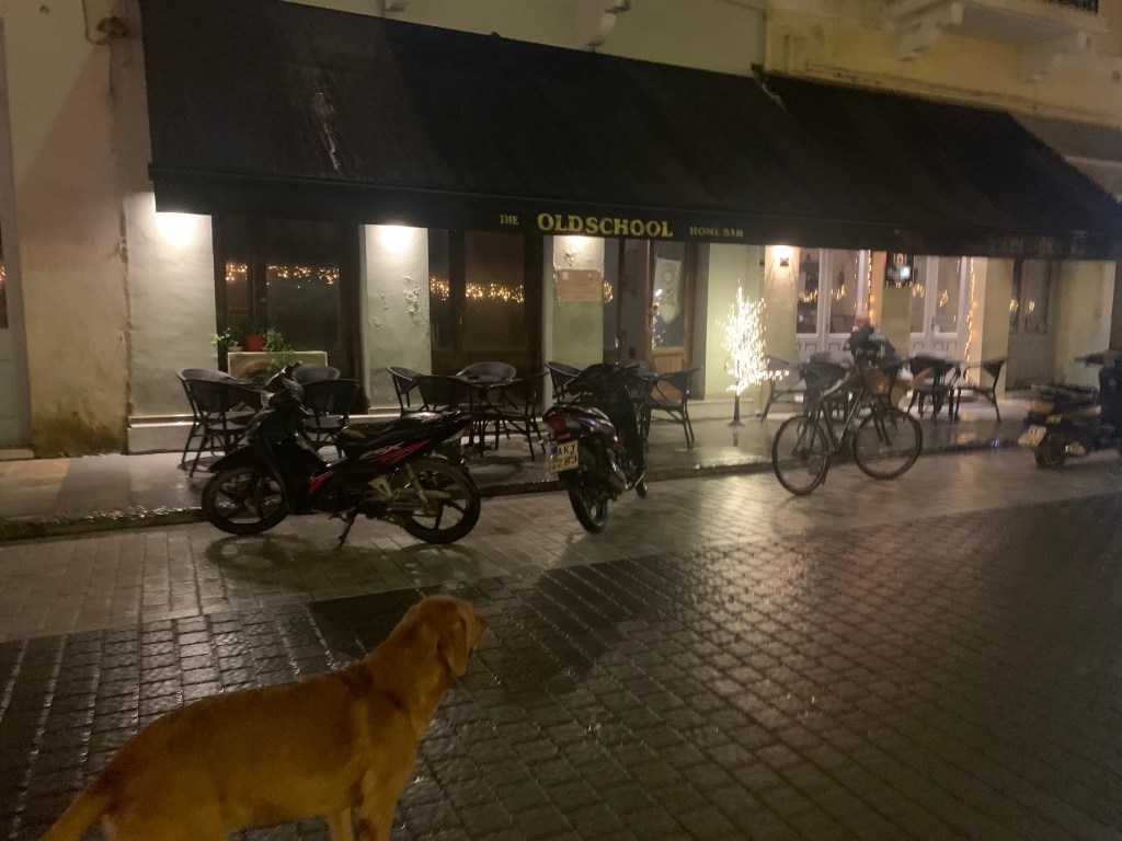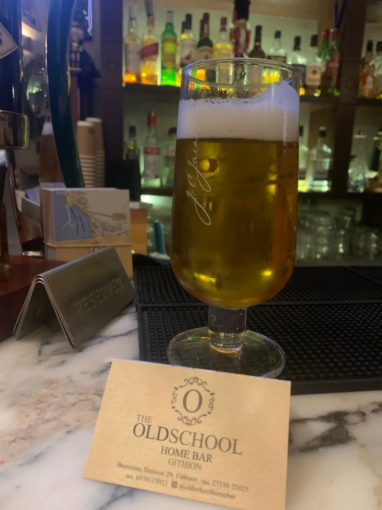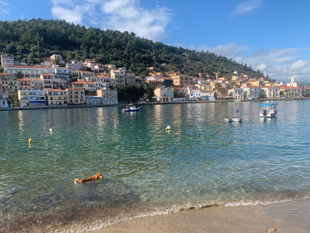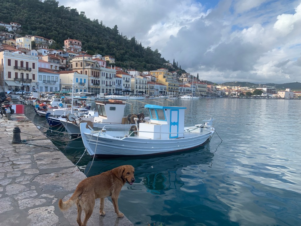 In the early evening Roja relishes a walk into the village for a beer. It’s one of his favourite things. The rain had eased, and I had my eye on a bar on the seafront called The Old School. There seems no set rule here on whether dogs can go inside the bar or tavern, just up to the landlord, as it is in England. In Spain for example, they are never allowed in, and in France, they are always allowed in. In the case of The Old school, the landlord was a dog lover, so Roja was welcomed as he has become accustomed to, with a labrador’s equivalent of a red carpet, a personal salutation and some tapas. It was a welcoming bar for the customer also, though still the choice of beer is remarkably limited, here just being Carlsberg on draught, or bottles of Alpha or Kaiser, two very common Greek beers.