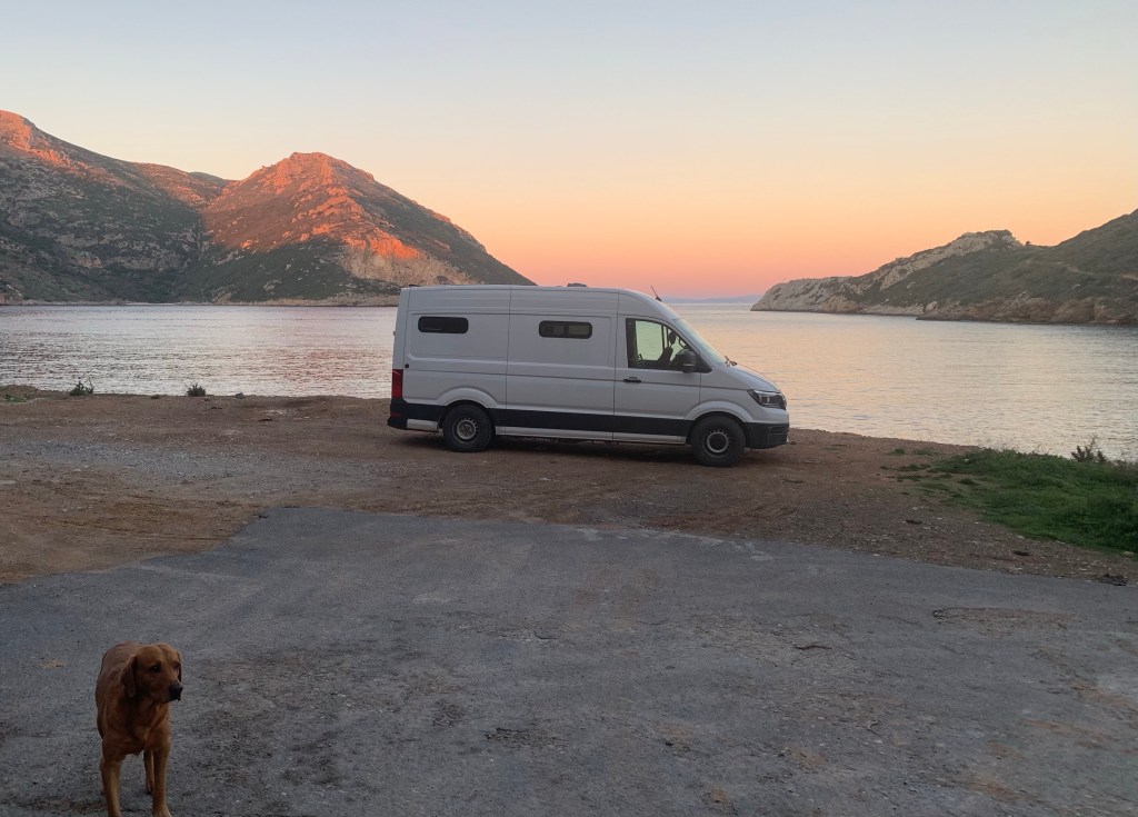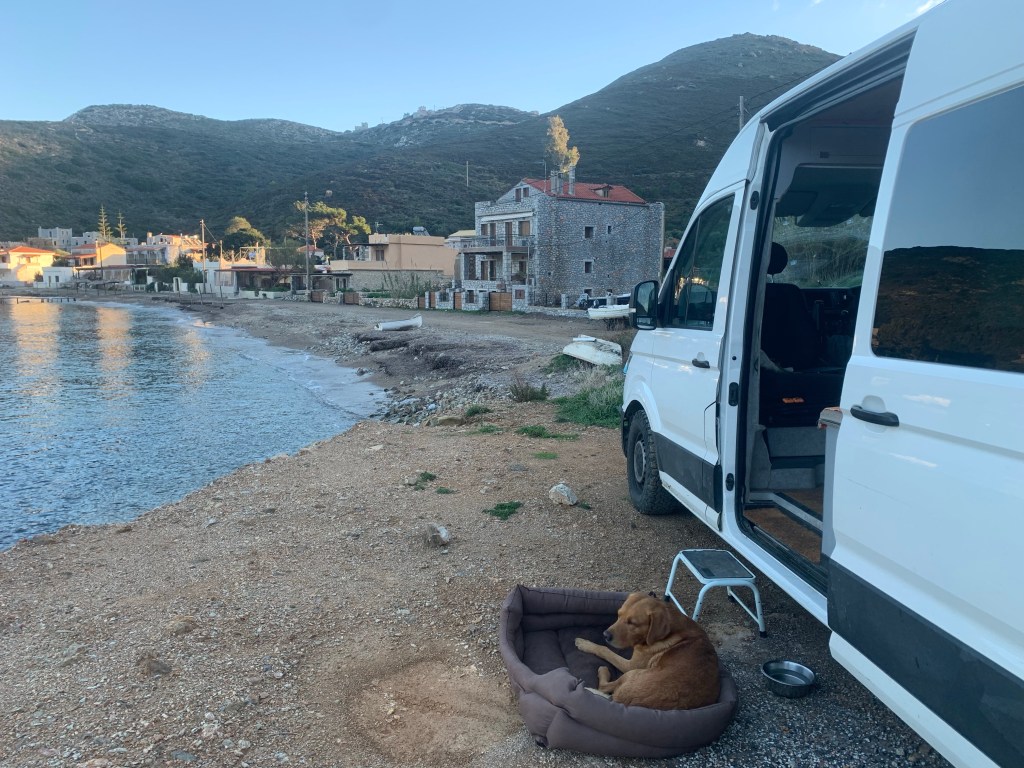I deliberated whether to stay at the car park, and in the end decided to shift a few kilometres to the sheltered bay of Porto Kagio. I met two cyclists on the way, and stopped for a chat. They were stationary, and having done such journeys so many times, always like to check whether they may need anything I could help with. So many people have done that for me in the past. They were a couple from Latvia, and planning to camp at the Cape.
