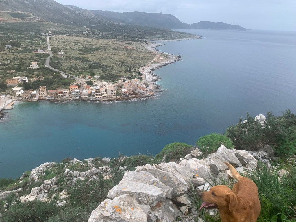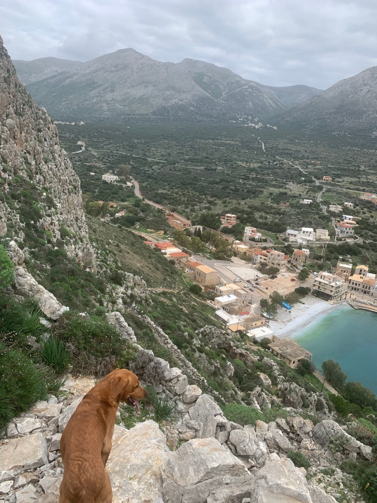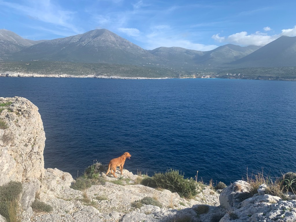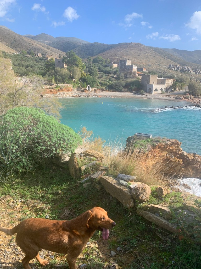 Today, Tuesday, we have been out to Gerolimenas, the village four kilometres to the north. Here, there is a mini-market, and a couple of taverns and restaurants. There were a few people around. I met two German couples, one that I had seen at Tigani parked up for the night at the carpark there. They were living in their van and working online, and as with a few vans I have met, had just picked up a rescue dog from Kalamata. The other German couple were a bit older and I recognised them, but couldn’t think from where. They remembered that it was on Lefkada at the surf beach just before the storm hit. They have the worst behaved dog I have encountered for a long while. Again, the three year old male tried to attack Roja, as he had in Lefkada. The street and village dogs would never behave like this.