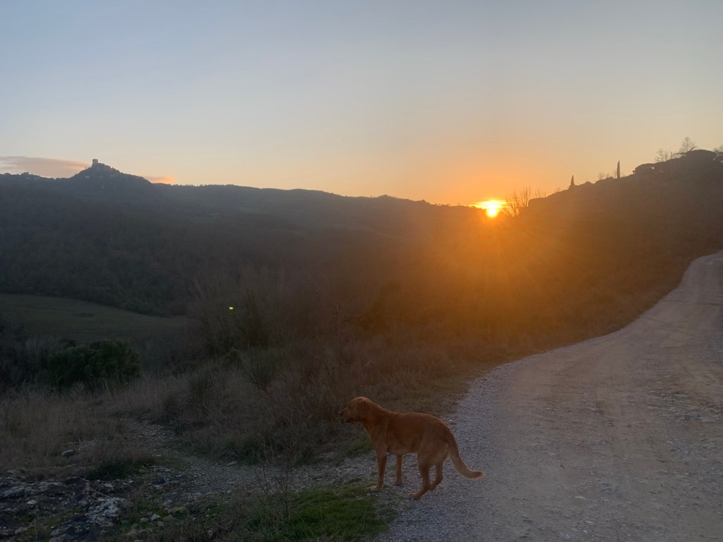 On a fine cold day here in southern Tuscany Roja and I took on another section of the Via di Francesca (St Francis’ Way) this morning. It’s similar weather across mainland Europe at the moment, high pressure in, and an easterly air flow. It got up to about 15C under the clear sky today, but will drop well below zero tonight.