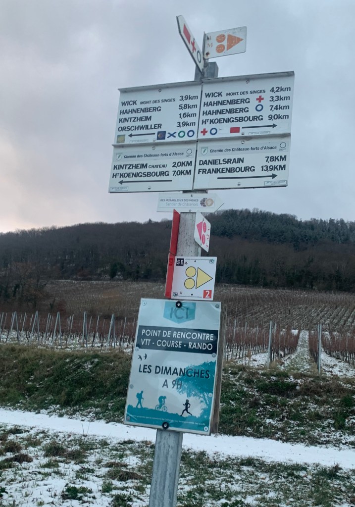 A couple of pleasant and cold days in villages of Alsace, Châtenois, Bleinschwiller, Nothalten, and Damnach. The wineries generally offer a place for campervans, with the likelihood they are wine visitors, and will spend in their shops. These spaces are behind their wineries, in their gardens, so covered in snow at present. I stayed in Dambach therefore, where there is a large car park on the edge of the town.