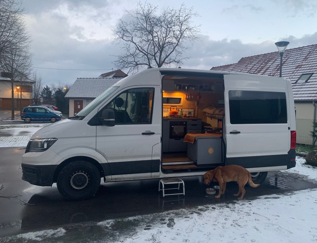 These villages have no visitors at present, though one of the winery owners, Schmitz, did come over and say hello. I took this for a sales pitch, so was coy initially, but he was a campervan owner himself, and interested in my conversion. He assured me that not only was I the only visitor of the day, but of the month as well. He also told me that though the shops of the wineries were in theory ‘open’, it was generally for mail-order business they had. I confessed my ignorance as regards to wine knowledge, especially white wine, but he invited me to his premises and suggested we partook of the bottles he had open, just three of them, all white, though I had hoped for a pinot noir, which the area is famous for also. It was an entertaining hour, for Roja as well, as he had a female black lab and they got on well. The tasting, or rather drinking, was okay, but he didn’t convert me to a white wine fan. I told him I was on route to a Belgian brewery tour, and that formed the large part of our conversation. I think if it hadn’t have been for his two young children, he would have accompanied me.