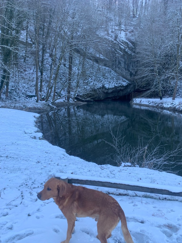 I finished my book, a Simenon ‘Maigret’, by which time it was only minus 5, and Roja and I headed out for a circuit of Han, which is usually a really busy tourist town, based around its caves. There were very few people out this morning.