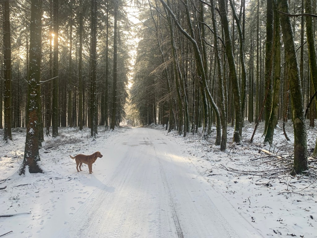 I’m stopped over in the village of Gedinne. The aire for campervans is deep in snow, so I’m nextdoor in the Sport Centre car park. It’s the last night of the cold spell, currently at 6 pm it’s minus 7 degrees, but we are very comfortable in the van watching the European rugby.