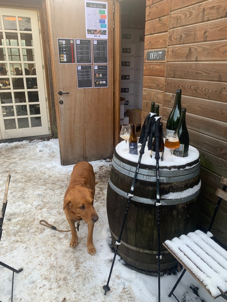 I spent the afternoon at Invictus Brewery, a few kilometres outside the village of Gedinne. It was a tremendous experience. This is a really small family brewery, built out of the back of a family house, surrounded by forest. With the snow, it means a two kilometre walk to get there, as the road is only passable by four wheel drive.