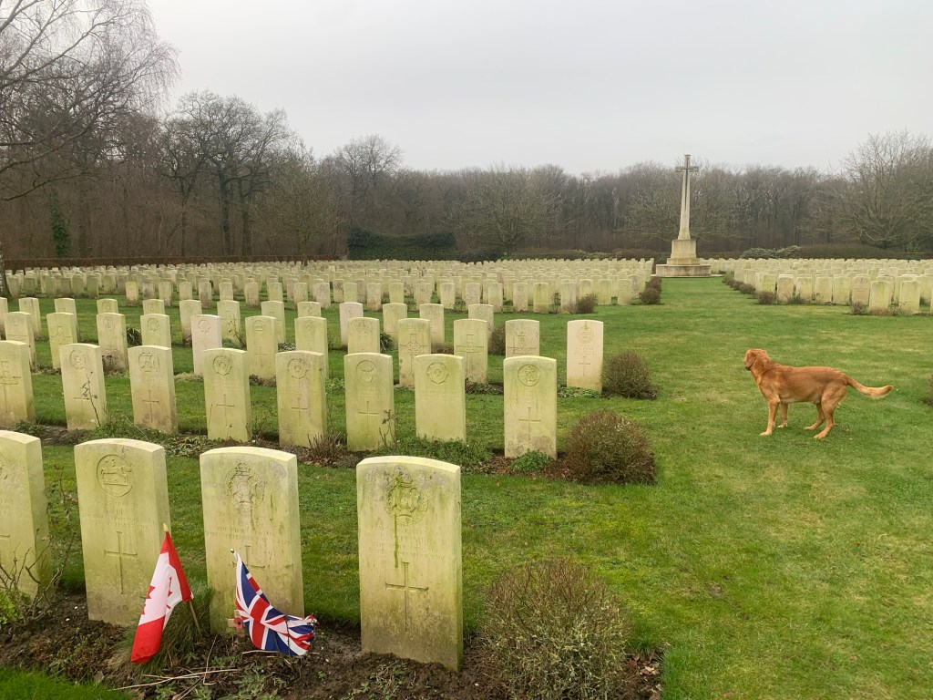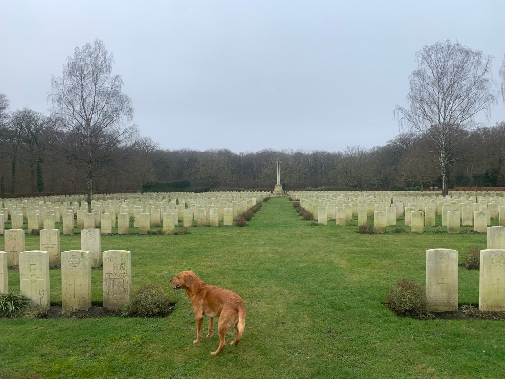 Otherwise, it was a wet day, but good enough to get out for a few hours. We walked the Saint Sixtus Trail, an 8 kilometre wander through the local farms and forests, taking in Dozinghem Military Cemetery.