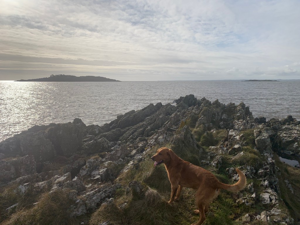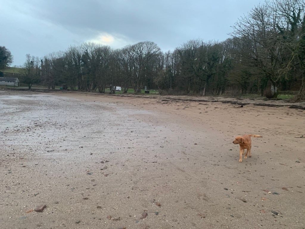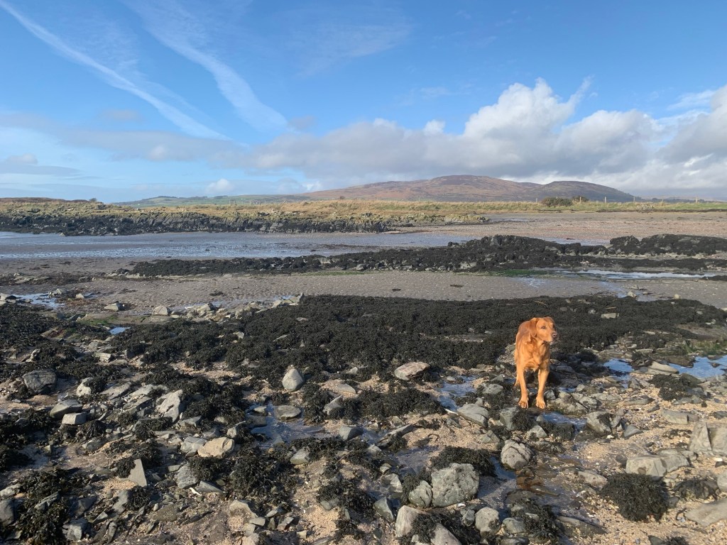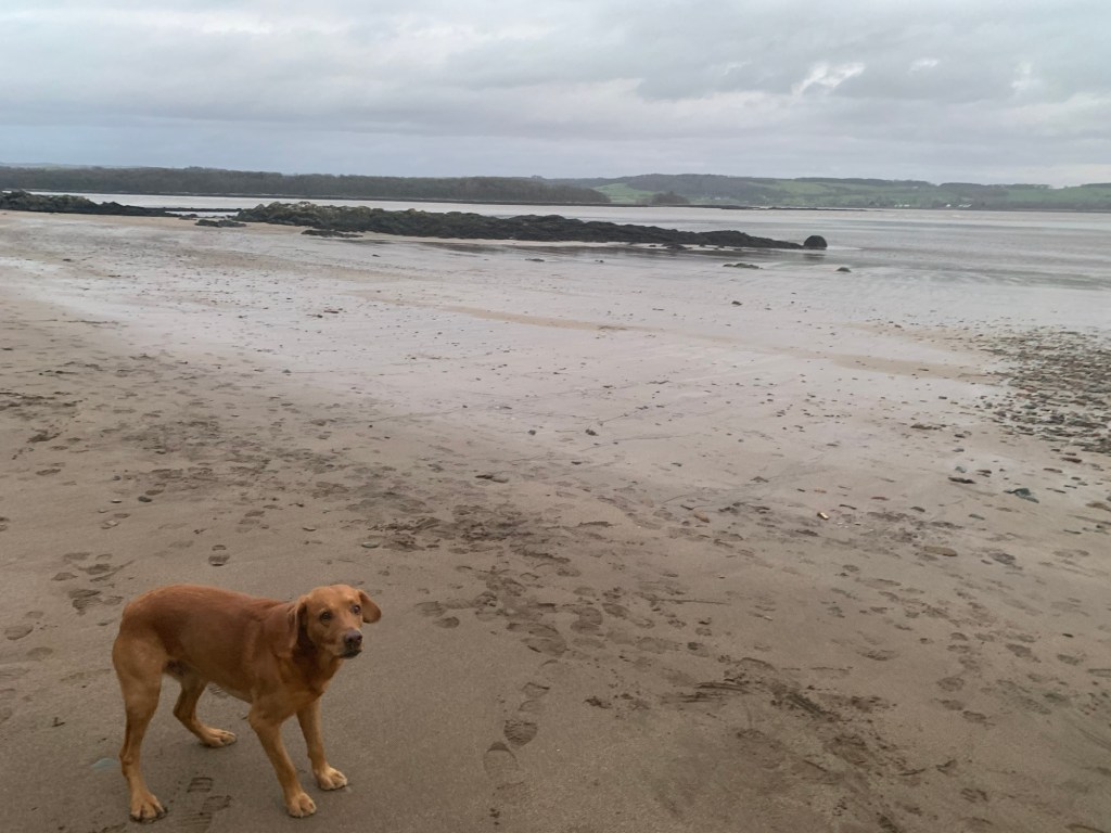 I began south of Kirkcudbright at Brighouse Bay, though it was a wild evening by the time I arrived, with a wind up above 40 miles per hour, beefy showers, and the temperature hovering around zero. Roja has missed beaches since Mani, and doesn’t fuss so much about the temperature, so we had an hour out, and made the most of low tide. To stay there would have been tough though, so I retreated back to Kirkcudbright, where there is a good sized car park on the sheltered harbour. There is a decent selection of pubs, cafes and restaurants here, something to bear in mind for next time, as I had come equipped with fresh salmon.