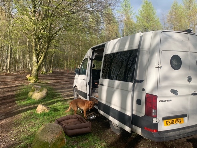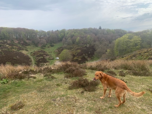 In the afternoon we drove a couple of hours further north, making sure to get into camp before the Premiership Rugby from Bristol. Then, Saturday evening is barely complete without a beer and a horror film, this time Late Night With The Devil, which I’ll review separately, but was entertaining, if a bit predictable. The park up was at Rebild, where I have been before, a couple of years ago when returning from the far north in November. This is a very rare hilly area of Denmark, sandstone hills with heather and rock, which are very scenic, especially at the moment, when their green colour is enhanced by all the rain. There’s a visitors’ centre, where I stayed last time, but this was a spring Saturday afternoon with good weather, so it was busy. I resorted to one of the hiking car parks a few hundred metres away. Pretty much all of the visitors left in the early evening as rain was due. It had attracted so many, as it was the first decent weather weekend of spring.