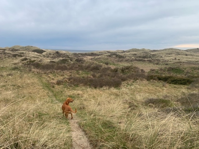 After lunch we drove up to the far north of the country, in readiness for the ferry to Norway tomorrow. There’s a coastal forest park at Tornby, a few kilometres south of Hirtshals, where the ferry goes from. The overnight rain had cleared and the day was fine, up to 16C, with plenty of sun, but the evening clouded over again, and the wind got up. I timed my arrival well, to catch the rugby from Gloucester, then take a hike down to the North Sea coast. I arrived into Hirtshals from Norway when travelling by bike in 2018, and then cycled down a very windy North Sea Cycle Route along the west coast, mainly, into the wind.. That journal is now in the archive.