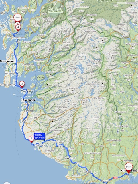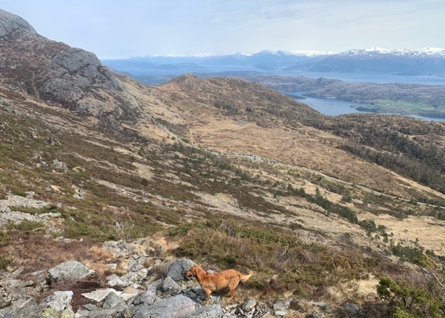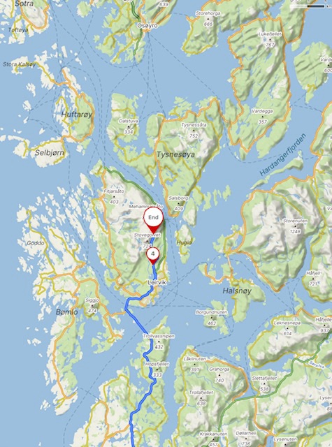 Stord Island is dominated by a short mountain range running north south for about 8 kilometres. I am stopped up at one of the two hikers’ car parks, at 380 metres, with views down over the fjords, Leirvik town, and the mainland, so looking eastwards.