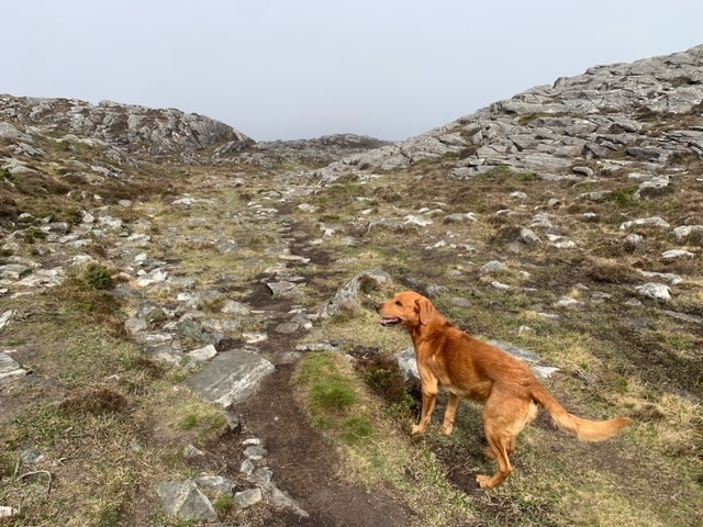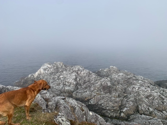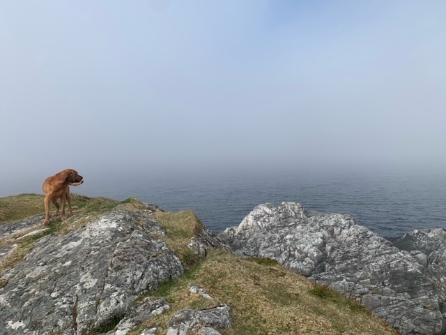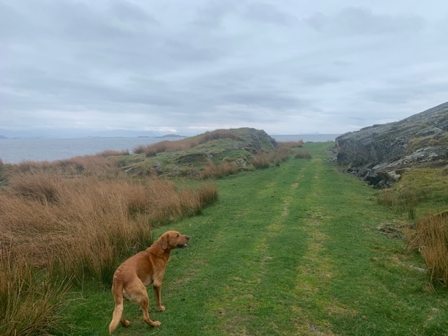 Rain did drift in overnight, along with a much stronger wind from the southwest, which I expect prevails here. Today was forecast to be a wet one, which gave me the chance to catch up on my reading. Unable though, to concentrate due to Roja’s stare, we headed out in the light rain just after 11, and took on a circular hike around the island. All the locals we met, about 8 of them, were extremely friendly, and wanted to chat. At these times, Roja realises that there is going to be something of a delay, and finds a comfortable spot to settle down. He understands now about my frequent ‘stop-and-chats’…