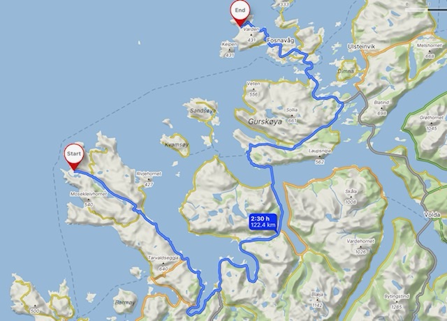 I’ve moved on across a two kilometre bridge to the island of Nerlandsøya, in particular to Mulevika beach, which is one of the best stopover places so far this course.