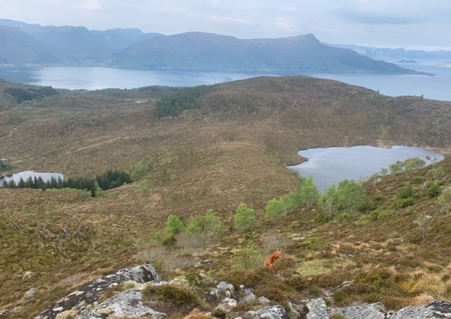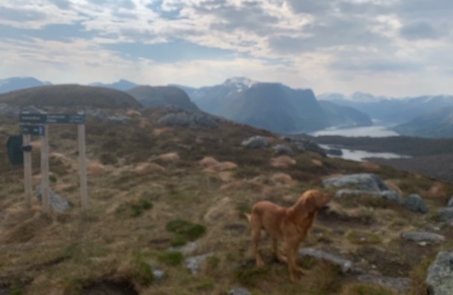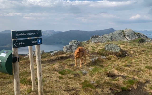 I expected the car park I was at, Drageskaret, to get busy with it being a Sunday. It had been when I arrived late yesterday afternoon, but soon emptied. With that in mind, Roja and I left for a circular hike of a couple of hours just after 9 am. It took in two peaks, the first at 352 metres, Knottahornet, and the second a few kilometres further on, at 396 metres, Sevedehornet.