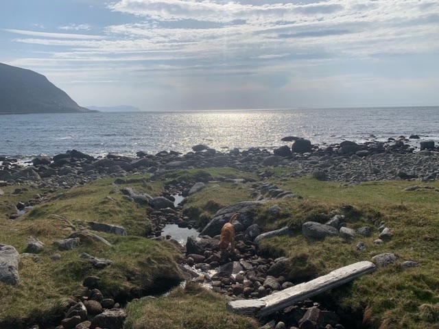 I spent the afternoon finishing my Norwegian book, set just a hundred kilometers or so away, a piece of historical fiction called The Bell in the Lake by Lars Mytting. It dragged a bit.. so just after 5 pm Roja and I headed down to the beach for an hour or so.
