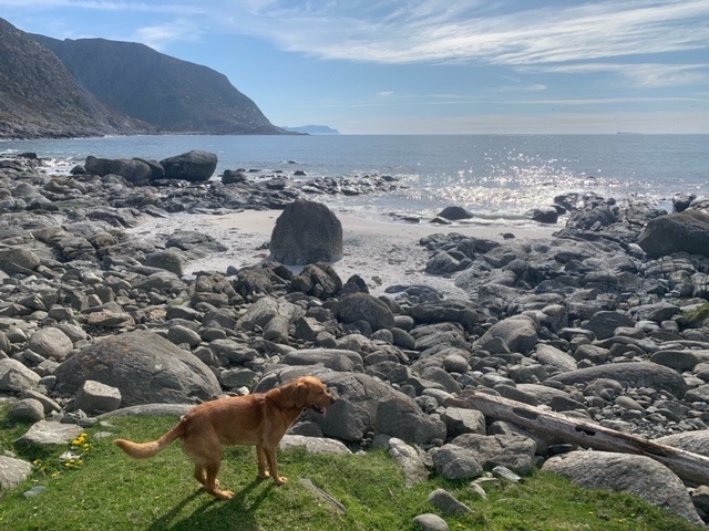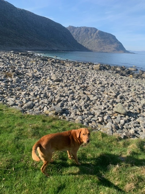 The labradoodle (or Poodle-dor) from the French campervan shrugged off its leash and came over to say hello this morning. He was getting on fine with Roja, but the woman ran over shouting for him to come back. They had no wanted to converse yesterday, but now were forced. I wished her a good morning, and we chatted briefly. They had borrowed the campervan from her parents, and were hating it. They were supposed to be away for six weeks, and at the end of their third, but now intend to cut their time in Norway short and stay in a hotel in Copenhagen for a week.
