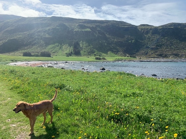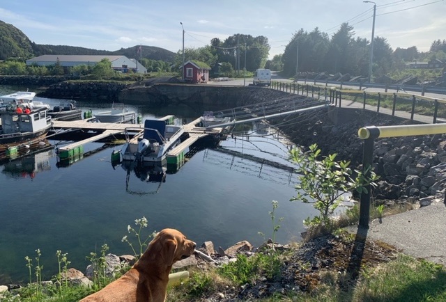 We are parked up for the night on the island of Fjørtofta, at the harbour, enjoying the late evening sun and listening to the cricket from Blackpool.