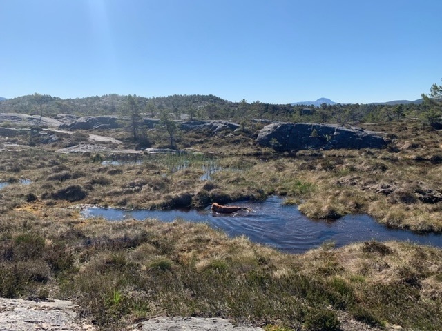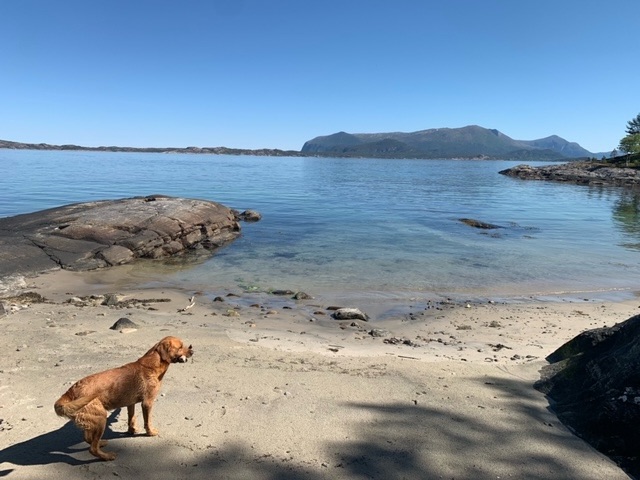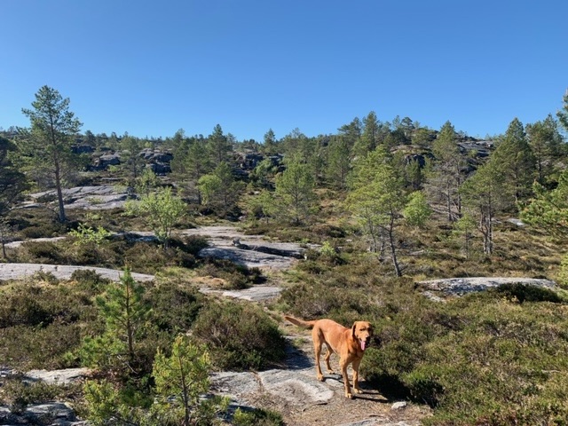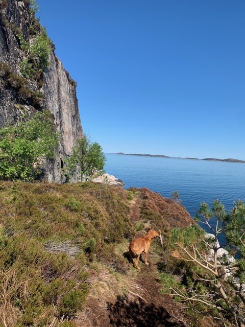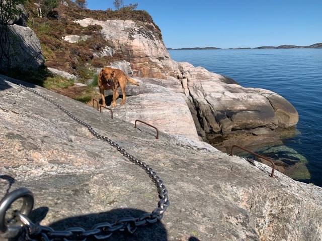 The hike I had planned to do at Kalika Beach, the Sandvikstein, proved to be a lot more challenging than I expected. I took it on anti-clockwise and the first half climbs over lots of bare rock with magnificent vistas, before descending after three kilometres or so, through pine forest to the coast. The return along the coast meant plenty of steep ups and downs, including several with fixed chains in the rock.